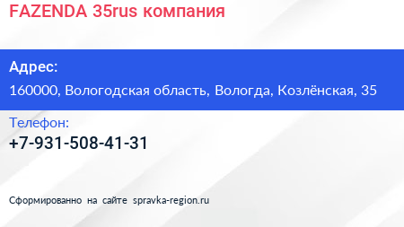 FAZENDA 35rus, компания по адресу 160000, Вологодская область, Вологда, Козлёнская, 35 в дальнейшем Организация, размещена в следующих категориях: