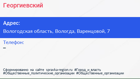 Георгиевский по адресу Вологодская область, Вологда, Варенцовой, 7 в дальнейшем Организация, размещена в следующих категориях: