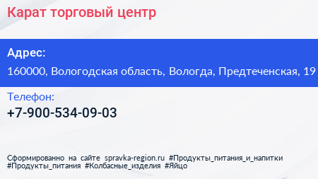 Карат, торговый центр по адресу 160000, Вологодская область, Вологда, Предтеченская, 19 в дальнейшем Организация, размещена в следующих категориях: