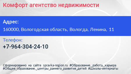 Комфорт, агентство недвижимости по адресу 160000, Вологодская область, Вологда, Ленина, 11 в дальнейшем Организация, размещена в следующих категориях: