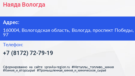Наяда-Вологда по адресу 160004, Вологодская область, Вологда, проспект Победы, 97 в дальнейшем Организация, размещена в следующих категориях: