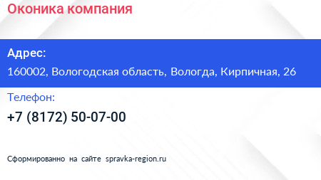 Для связи с организацией воспользуйтесь номером телефона: +7 (8172) 50-07-00. Пн: c 09:00-18:00, Вт: c 09:00-18:00, Ср: c 09:00-18:00, Чт: c 09:00-18:00, Пт: c 09:00-18:00, Сб: выходной, Вс: выходной, вы можете обратиться в эту организацию.