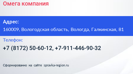 Омега, компания по адресу 160009, Вологодская область, Вологда, Галкинская, 81 в дальнейшем Организация, размещена в следующих категориях: