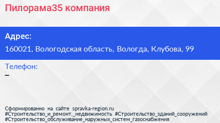 Пилорама35, компания по адресу 160021, Вологодская область, Вологда, Клубова, 99 в дальнейшем Организация, размещена в следующих категориях: