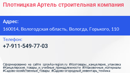 Плотницкая Артель, строительная компания по адресу 160014, Вологодская область, Вологда, Горького, 110 в дальнейшем Организация, размещена в следующих категориях: