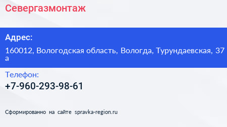 Севергазмонтаж по адресу 160012, Вологодская область, Вологда, Турундаевская, 37 а в дальнейшем Организация, размещена в следующих категориях: