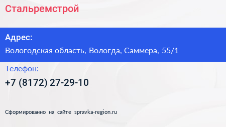 Стальремстрой по адресу Вологодская область, Вологда, Саммера, 55/1 в дальнейшем Организация, размещена в следующих категориях: