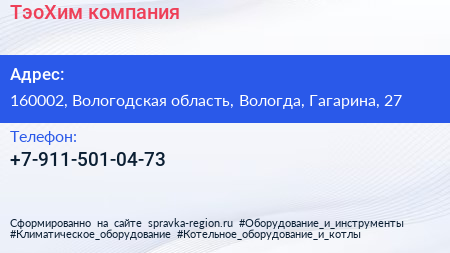 ТэоХим, компания по адресу 160002, Вологодская область, Вологда, Гагарина, 27 в дальнейшем Организация, размещена в следующих категориях: