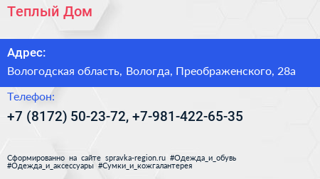 Теплый Дом по адресу Вологодская область, Вологда, Преображенского, 28а в дальнейшем Организация, размещена в следующих категориях: