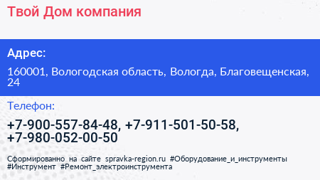 Твой Дом, компания по адресу 160001, Вологодская область, Вологда, Благовещенская, 24 в дальнейшем Организация, размещена в следующих категориях: