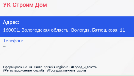 УК Строим Дом по адресу 160001, Вологодская область, Вологда, Батюшкова, 11 в дальнейшем Организация, размещена в следующих категориях: