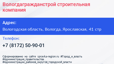 Вологдагражданстрой, строительная компания по адресу Вологодская область, Вологда, Ярославская, 41 стр в дальнейшем Организация, размещена в следующих категориях: