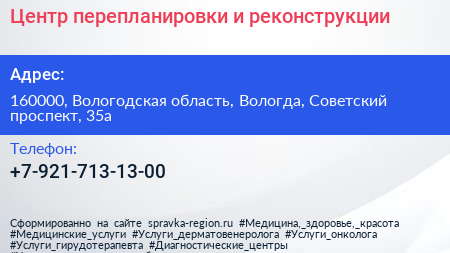 Центр перепланировки и реконструкции по адресу 160000, Вологодская область, Вологда, Советский проспект, 35а в дальнейшем Организация, размещена в следующих категориях: