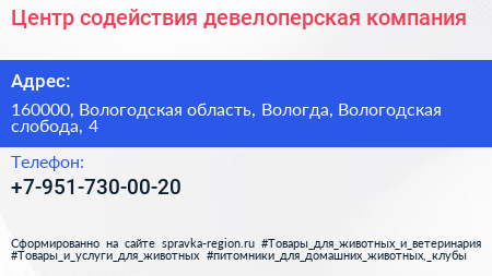 Центр содействия, девелоперская компания по адресу 160000, Вологодская область, Вологда, Вологодская слобода, 4 в дальнейшем Организация, размещена в следующих категориях: