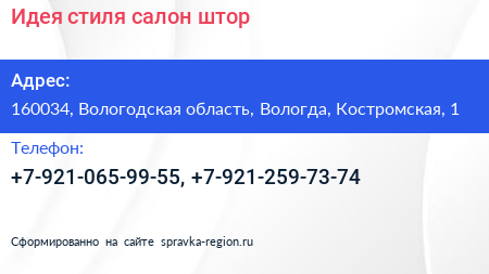 Идея стиля, салон штор по адресу 160034, Вологодская область, Вологда, Костромская, 1 в дальнейшем Организация, размещена в следующих категориях: