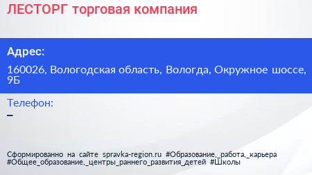 ЛЕСТОРГ, торговая компания по адресу 160026, Вологодская область, Вологда, Окружное шоссе, 9Б в дальнейшем Организация, размещена в следующих категориях: