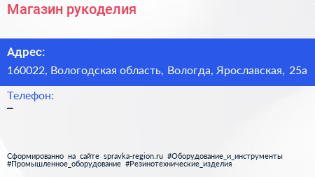Магазин рукоделия по адресу 160022, Вологодская область, Вологда, Ярославская, 25а в дальнейшем Организация, размещена в следующих категориях: