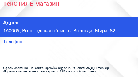ТекСТИЛЬ, магазин по адресу 160009, Вологодская область, Вологда, Мира, 82 в дальнейшем Организация, размещена в следующих категориях: