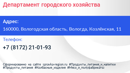 Департамент городского хозяйства по адресу 160000, Вологодская область, Вологда, Козлёнская, 11 в дальнейшем Организация, размещена в следующих категориях: