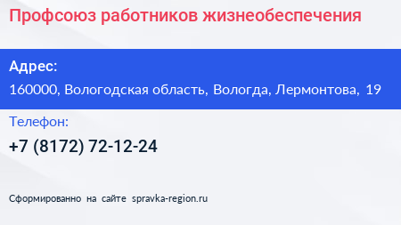 Профсоюз работников жизнеобеспечения по адресу 160000, Вологодская область, Вологда, Лермонтова, 19 в дальнейшем Организация, размещена в следующих категориях: