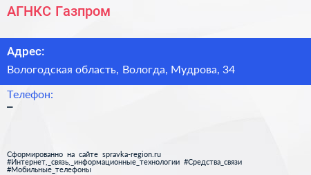 АГНКС Газпром по адресу Вологодская область, Вологда, Мудрова, 34 в дальнейшем Организация, размещена в следующих категориях: