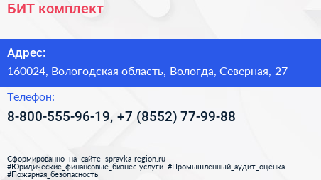 БИТ комплект по адресу 160024, Вологодская область, Вологда, Северная, 27 в дальнейшем Организация, размещена в следующих категориях: