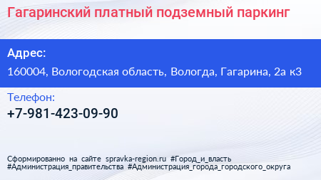 Гагаринский, платный подземный паркинг по адресу 160004, Вологодская область, Вологда, Гагарина, 2а к3 в дальнейшем Организация, размещена в следующих категориях: