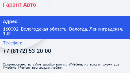 Гарант-Авто по адресу 160002, Вологодская область, Вологда, Ленинградская, 132 в дальнейшем Организация, размещена в следующих категориях: