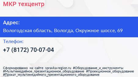 МКР, техцентр по адресу Вологодская область, Вологда, Окружное шоссе, 69 в дальнейшем Организация, размещена в следующих категориях: