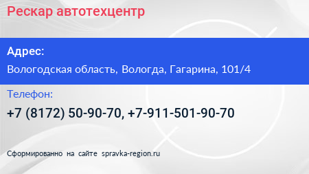 Рескар, автотехцентр по адресу Вологодская область, Вологда, Гагарина, 101/4 в дальнейшем Организация, размещена в следующих категориях: