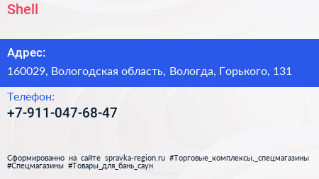 Shell по адресу 160029, Вологодская область, Вологда, Горького, 131 в дальнейшем Организация, размещена в следующих категориях: