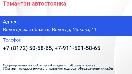 Тамантэн, автостоянка по адресу Вологодская область, Вологда, Мохова, 11 в дальнейшем Организация, размещена в следующих категориях: