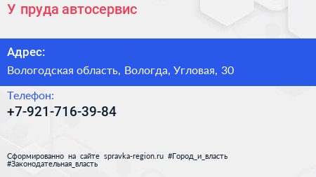 У пруда, автосервис по адресу Вологодская область, Вологда, Угловая, 30 в дальнейшем Организация, размещена в следующих категориях: