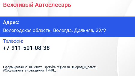 Вежливый Автослесарь по адресу Вологодская область, Вологда, Дальняя, 29/9 в дальнейшем Организация, размещена в следующих категориях: