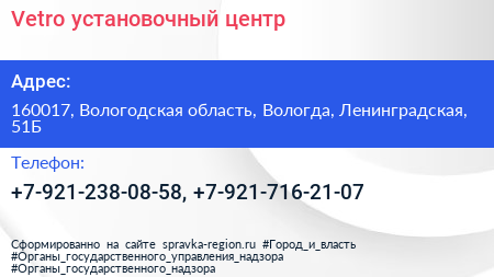 Vetro, установочный центр по адресу 160017, Вологодская область, Вологда, Ленинградская, 51Б в дальнейшем Организация, размещена в следующих категориях: