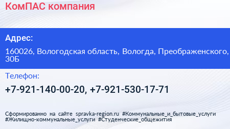 КомПАС, компания по адресу 160026, Вологодская область, Вологда, Преображенского, 30Б в дальнейшем Организация, размещена в следующих категориях: