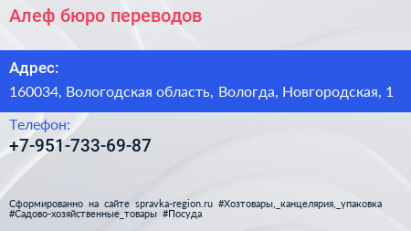 Алеф, бюро переводов по адресу 160034, Вологодская область, Вологда, Новгородская, 1 в дальнейшем Организация, размещена в следующих категориях: