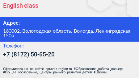 English class по адресу 160002, Вологодская область, Вологда, Ленинградская, 150а в дальнейшем Организация, размещена в следующих категориях: