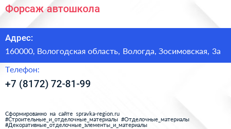 Форсаж, автошкола по адресу 160000, Вологодская область, Вологда, Зосимовская, 3а в дальнейшем Организация, размещена в следующих категориях: