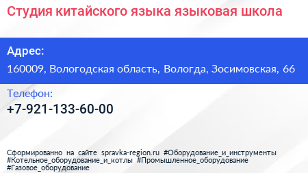 Студия китайского языка, языковая школа по адресу 160009, Вологодская область, Вологда, Зосимовская, 66 в дальнейшем Организация, размещена в следующих категориях: