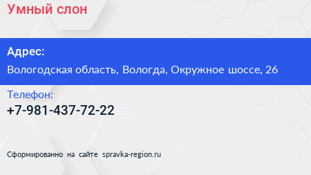 Умный слон по адресу Вологодская область, Вологда, Окружное шоссе, 26 в дальнейшем Организация, размещена в следующих категориях: