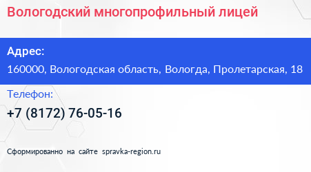 Вологодский многопрофильный лицей по адресу 160000, Вологодская область, Вологда, Пролетарская, 18 в дальнейшем Организация, размещена в следующих категориях: