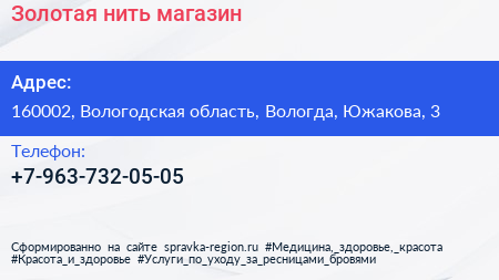 Золотая нить, магазин по адресу 160002, Вологодская область, Вологда, Южакова, 3 в дальнейшем Организация, размещена в следующих категориях: