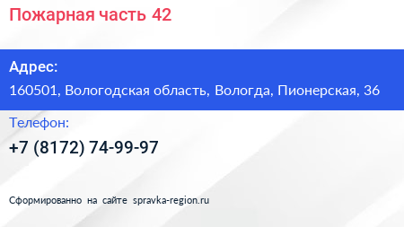 Пожарная часть №42 по адресу 160501, Вологодская область, Вологда, Пионерская, 36 в дальнейшем Организация, размещена в следующих категориях: