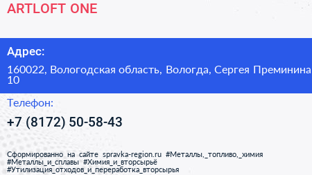 ARTLOFT ONE по адресу 160022, Вологодская область, Вологда, Сергея Преминина, 10 в дальнейшем Организация, размещена в следующих категориях: