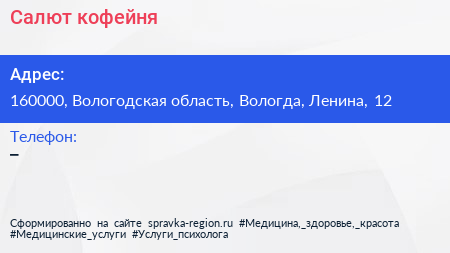 Салют, кофейня по адресу 160000, Вологодская область, Вологда, Ленина, 12 в дальнейшем Организация, размещена в следующих категориях: