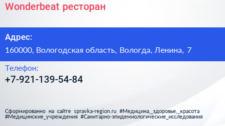 Wonderbeat, ресторан по адресу 160000, Вологодская область, Вологда, Ленина, 7 в дальнейшем Организация, размещена в следующих категориях: