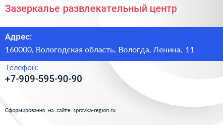Зазеркалье, развлекательный центр по адресу 160000, Вологодская область, Вологда, Ленина, 11 в дальнейшем Организация, размещена в следующих категориях: