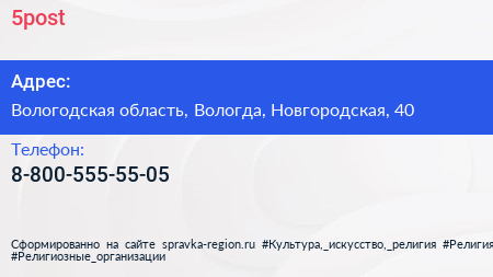 5post по адресу Вологодская область, Вологда, Новгородская, 40 в дальнейшем Организация, размещена в следующих категориях: