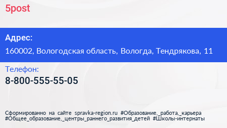 5post по адресу 160002, Вологодская область, Вологда, Тендрякова, 11 в дальнейшем Организация, размещена в следующих категориях: